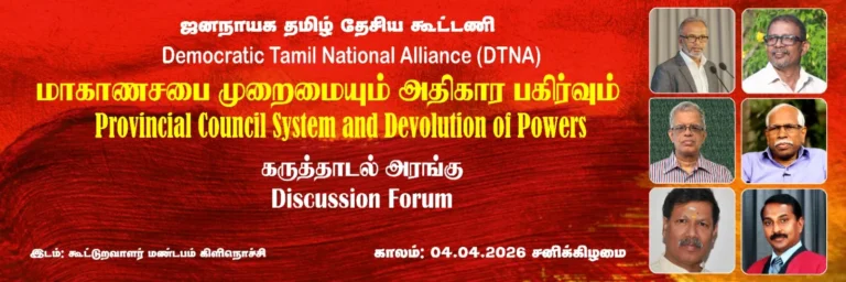 மாகாண சபை முறைமையும் அதிகாரப் பகிர்வும். DTNA, இன் 5 வது கருத்தாடல் நாளை கிளிநொச்சியில் EPRLF April 3, 2026
